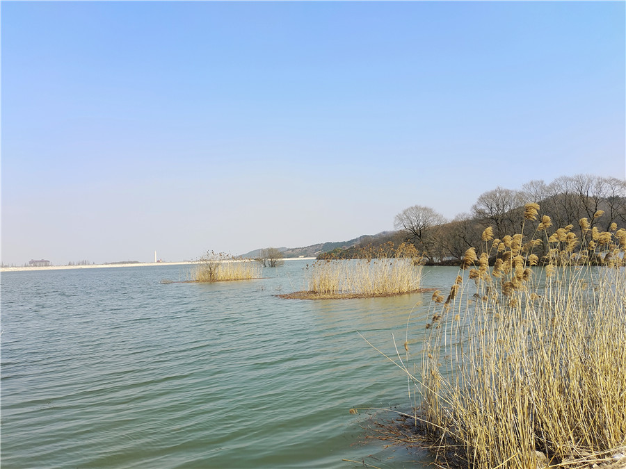 在廬江縣的另一邊——湯池鎮,大家欣賞到了不一樣的原生態自然風光。漫步金湯湖畔,只見藍天與碧水相對,水面波光粼粼,岸邊和湖中長著一叢叢蘆葦,偶爾還有水鳥飛過。金湯湖坐落在湯池鎮綿延的群山腳下,為1958年人工興建的一座水庫,擁有著自然生態之美。