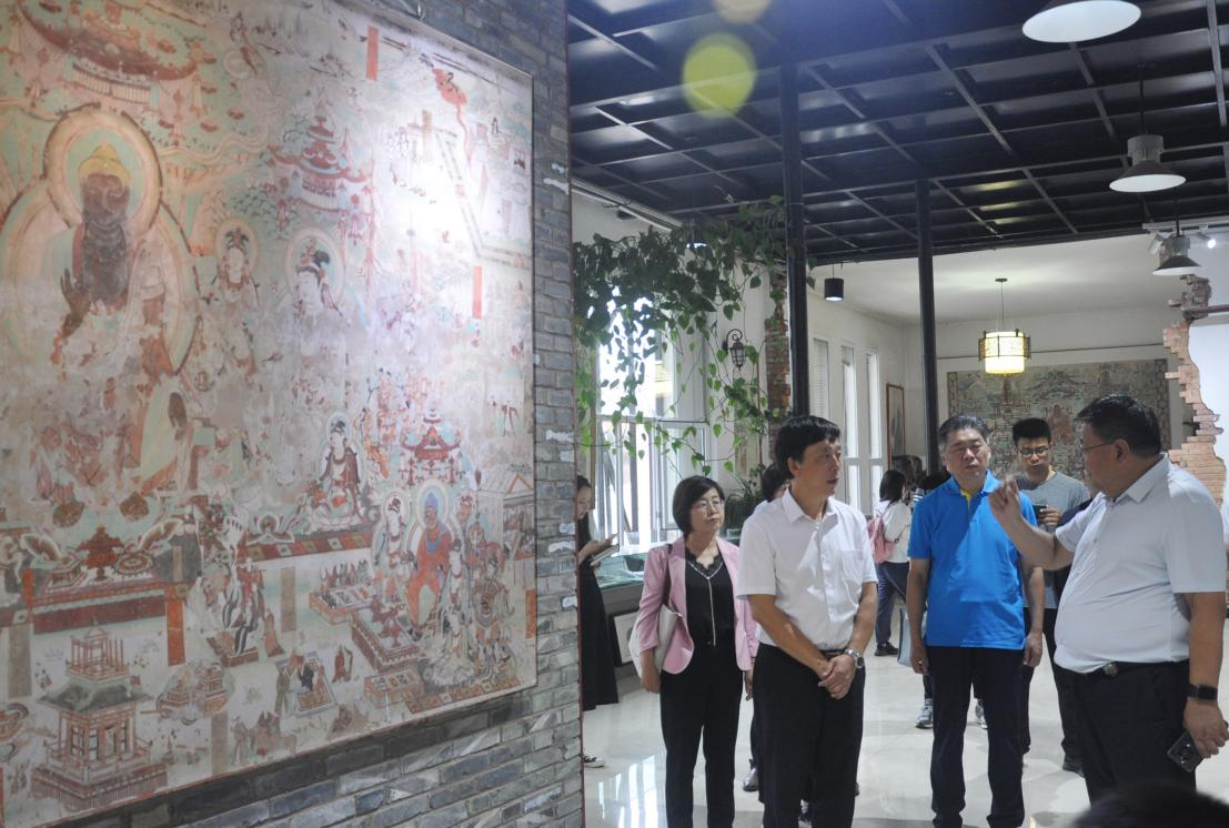 河西學院負責人向采訪團介紹敦煌壁畫特色課程教學。